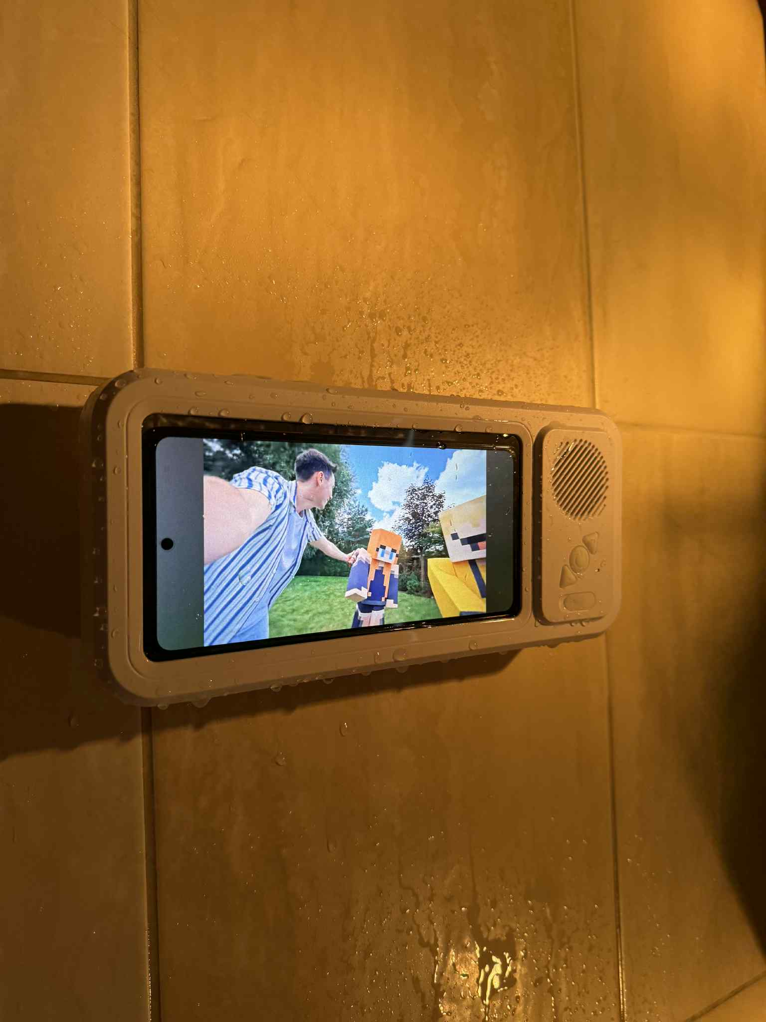 Korzystaj z telefonu i muzyki nawet w łazience – AquaSound chroni przed wodą i parą, zapewniając bezpieczeństwo Twojego urządzenia. -